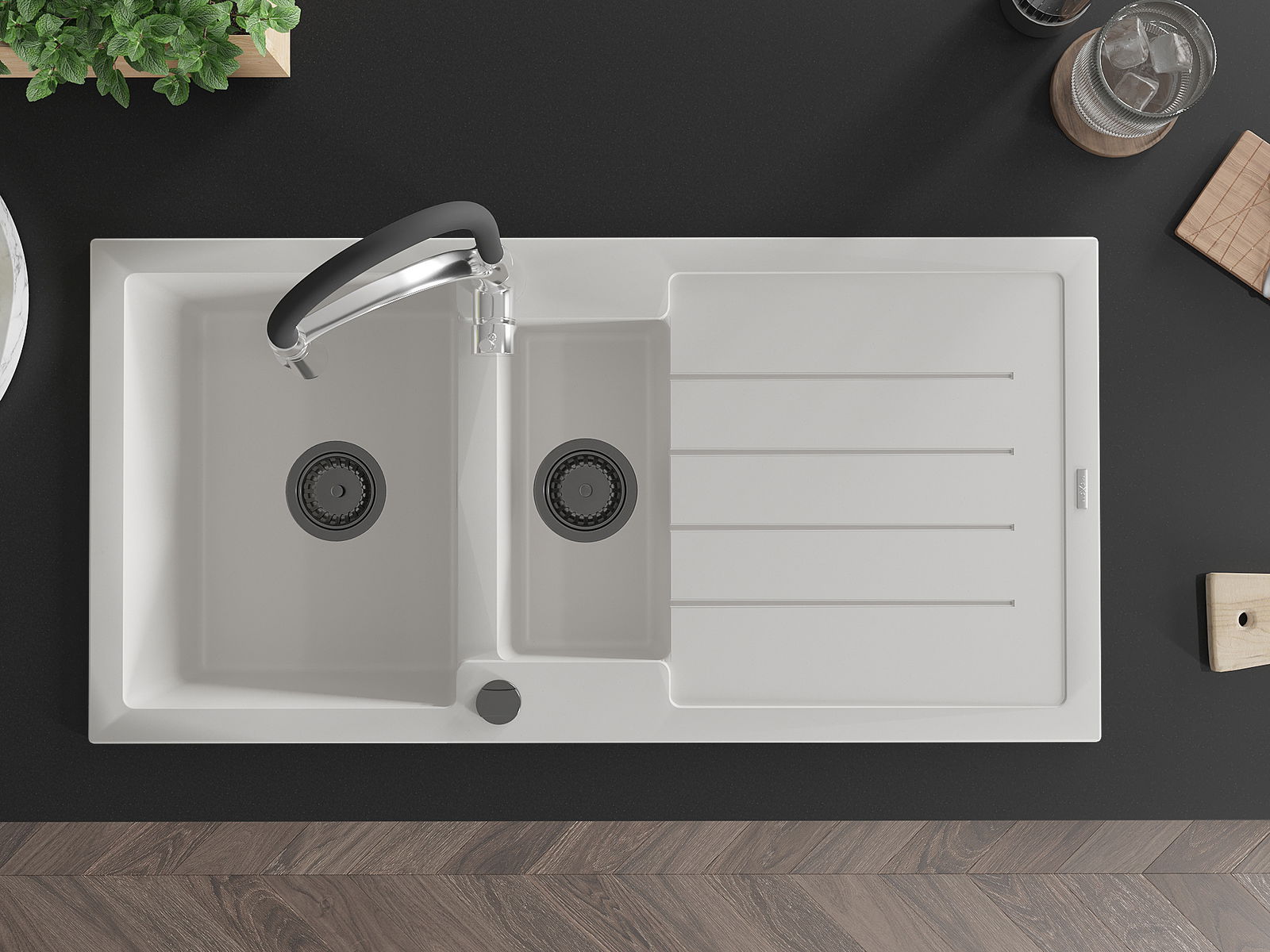 La surface de l'évier est très bien durcie, elle se distingue par une résistance exceptionnelle aux dommages mécaniques et aux rayures. Le matériau durable de fabrication permet de profiter de l'apparence de l'évier pendant de nombreuses années d'utilisation.