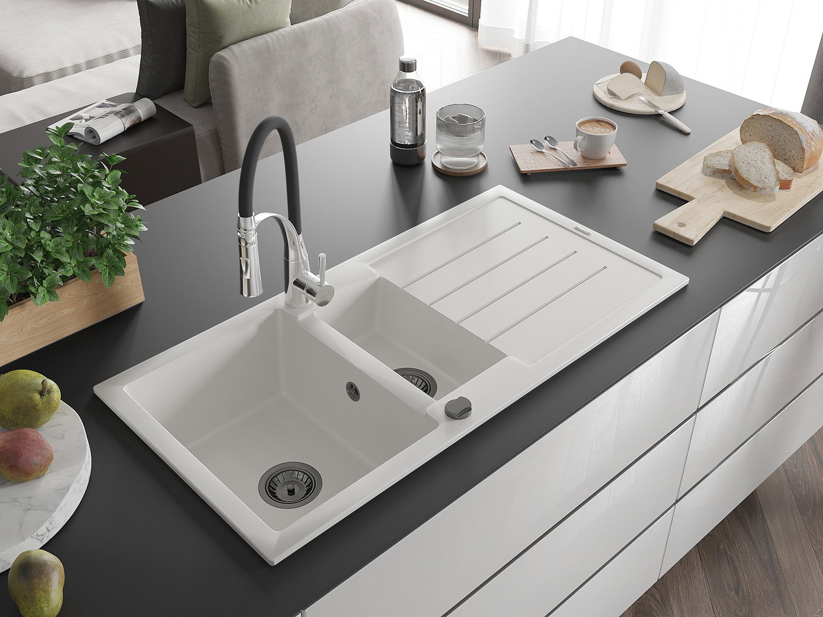 L'évier se distingue par une résistance exceptionnelle aux hautes températures et à leurs changements soudains, ce qui évite toute déformation même sous l'effet prolongé de l'eau chaude.