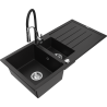 Mexen Andres évier en granit à 1,5 bac avec égouttoir et robinet de cuisine Aster, noir/métallisé argenté - 6515-73-73450-07