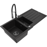 Mexen Andres évier en granit 1,5 bac avec égouttoir et robinet de cuisine Aster, noir/doré métallique - 6515-75-73450-07-B