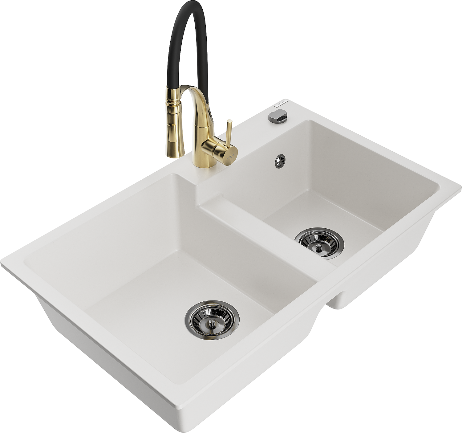 Mexen Tomas évier de cuisine en granit à 2 bacs avec robinet de cuisine Aster, blanc - 6516-20-73450-57-B