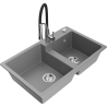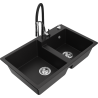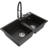 Mexen Tomas évier en granit 2 bacs avec robinet de cuisine Aster, noir/métallisé argenté - 6516-73-73450-07