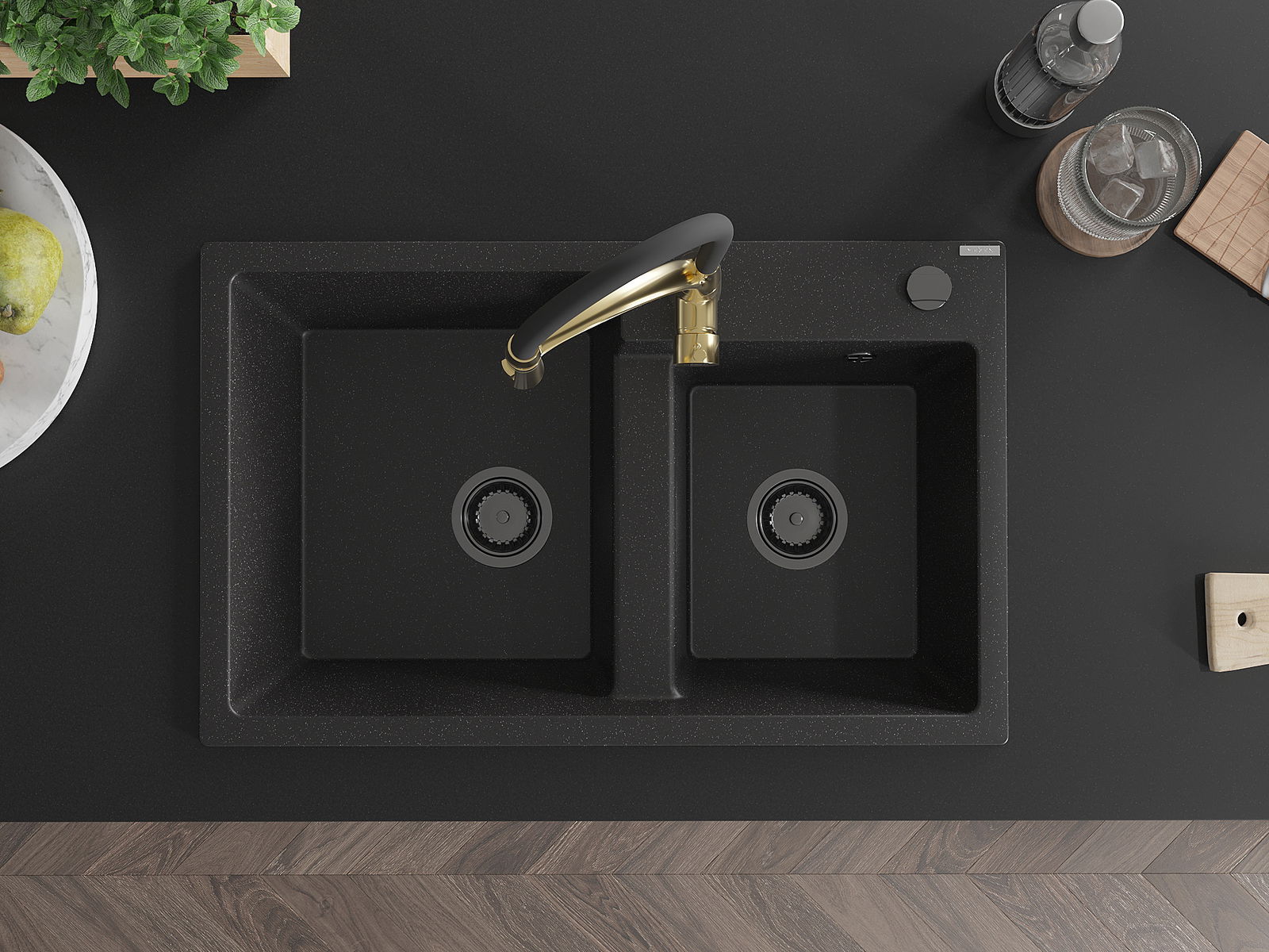L'évier a un trou sous-meulé de 35 mm de diamètre à percer soi-même. Il peut être utilisé, entre autres, pour installer un distributeur de liquide, ce qui éliminera la présence de bouteilles en plastique dans la cuisine et lui donnera une finition élégante.