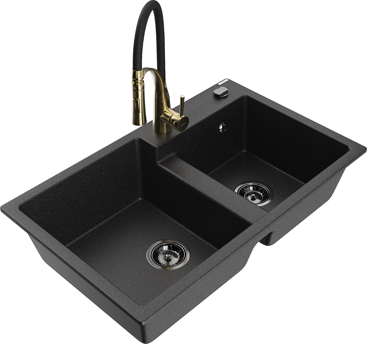 Mexen Tomas évier de cuisine en granit à 2 bacs avec robinet Aster, noir/argent métallisé - 6516-73-73450-57-B