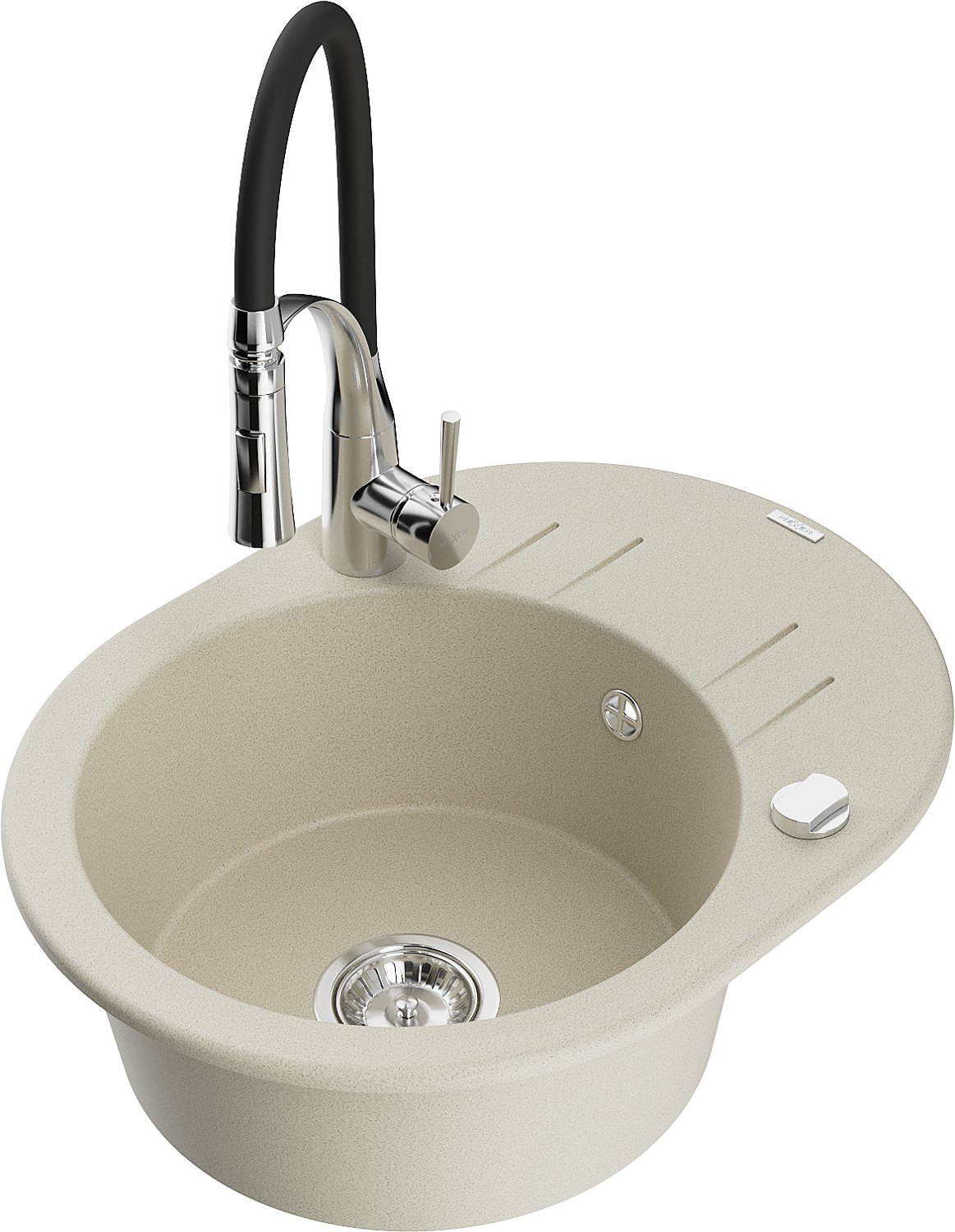 Mexen Kevin évier en granit 1 bac avec égouttoir et robinet de cuisine Aster, beige - 6517-69-73450-07
