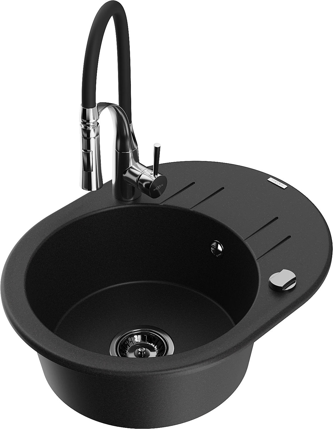 Mexen Kevin évier en granit 1 bac avec égouttoir et robinet de cuisine Aster, noir - 6517-77-73450-07-B