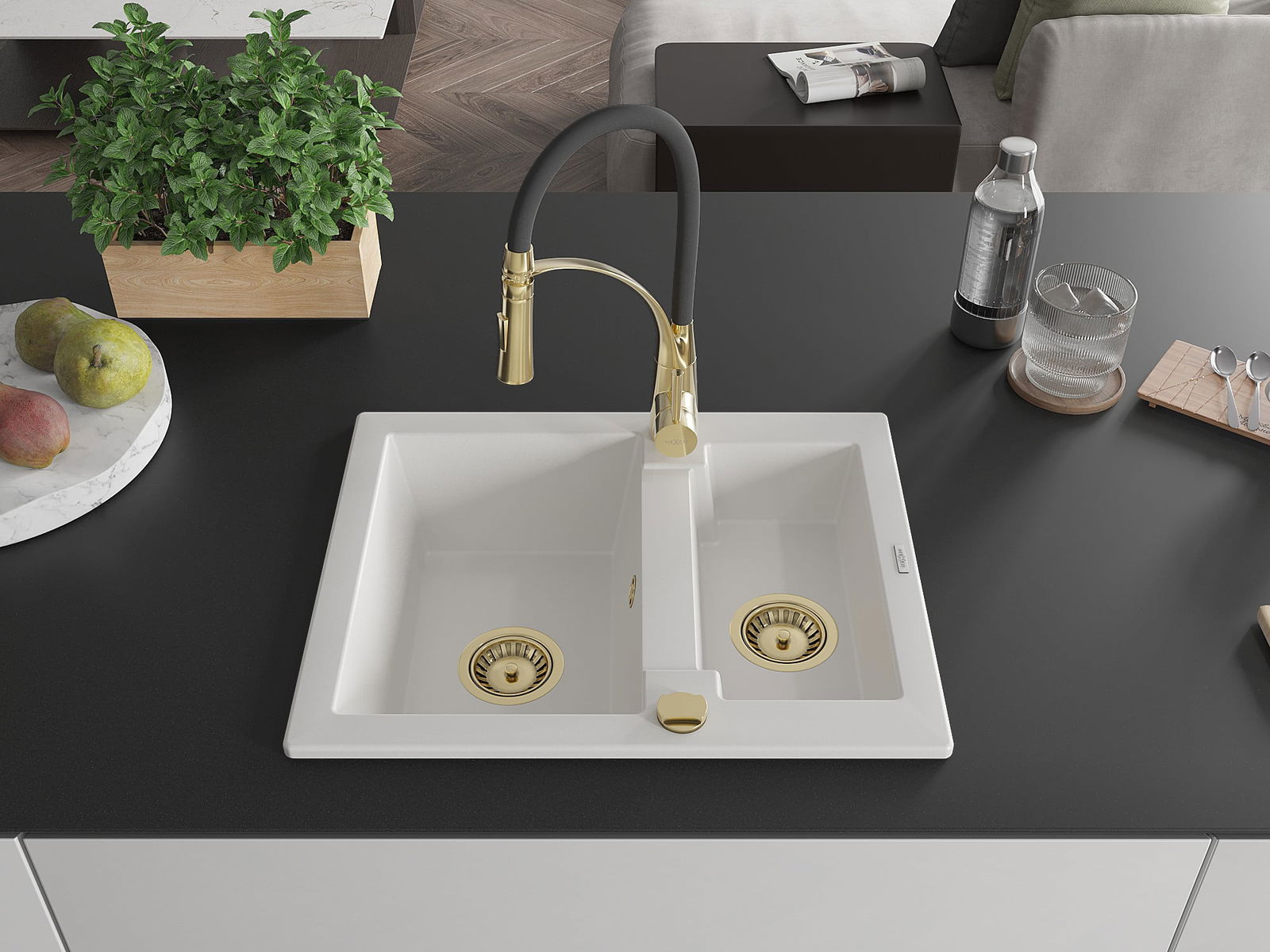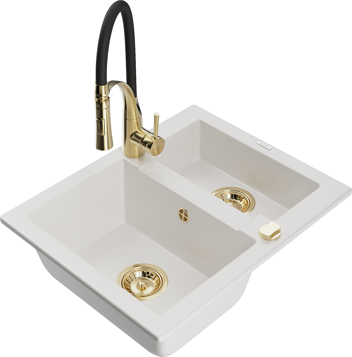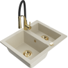 Mexen Carlos évier en granit 1,5 bac avec mitigeur de cuisine Aster, blanc - 6518-20-73450-57-G