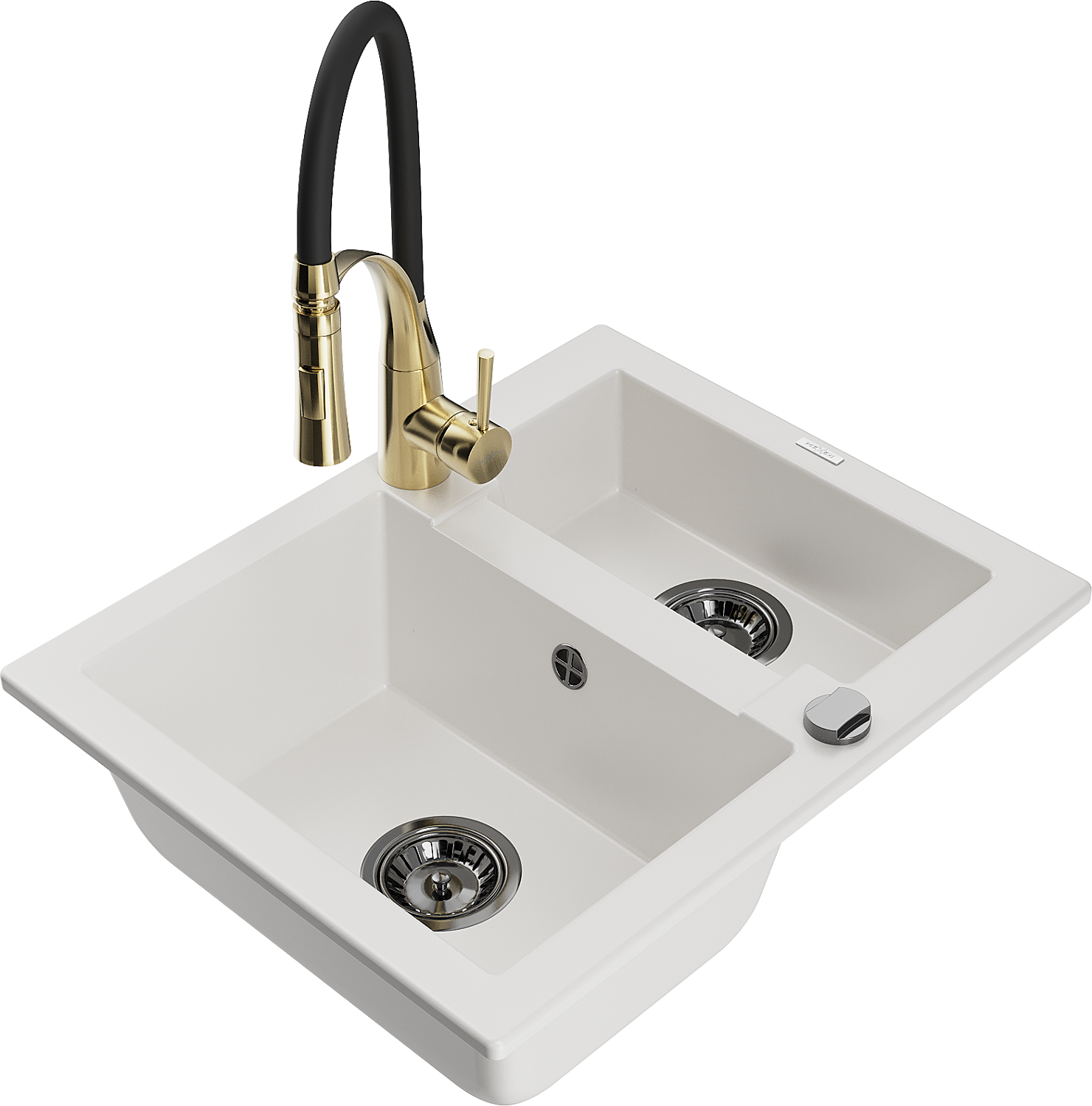 Mexen Carlos évier en granit 1,5 bac avec robinet de cuisine Aster, blanc - 6518-20-73450-57-B