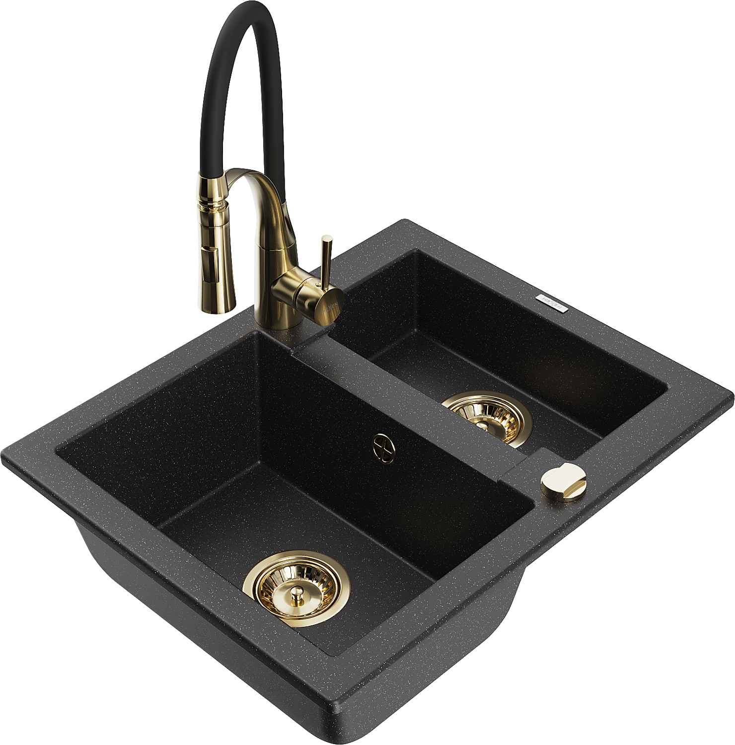 Mexen Carlos évier en granit 1,5 bac avec mitigeur de cuisine Aster, noir/argent métallique - 6518-73-73450-57-G