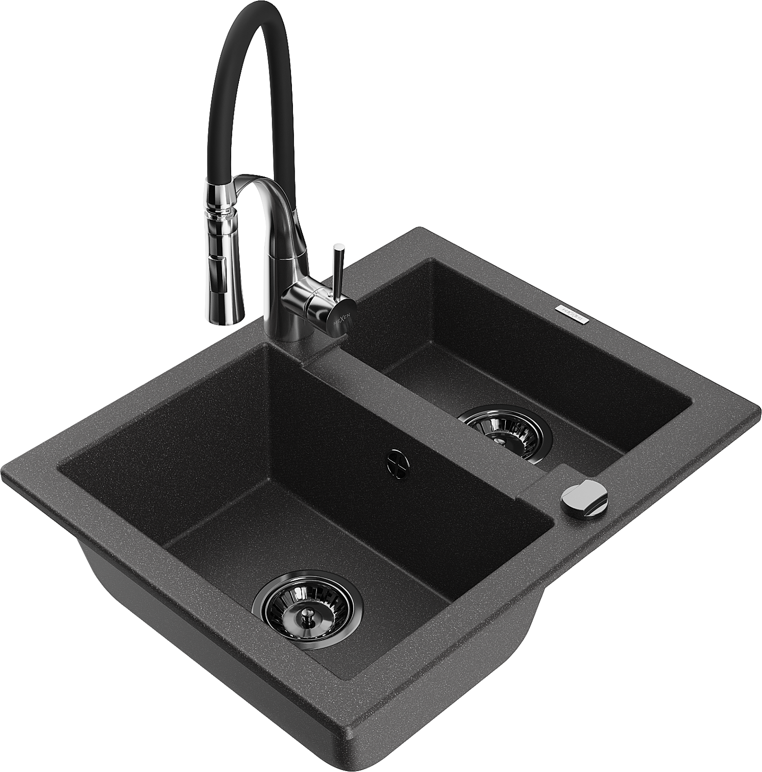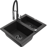 Mexen Carlos évier en granit 1,5 bac avec mitigeur de cuisine Aster, noir moucheté - 6518-76-73450-07-B