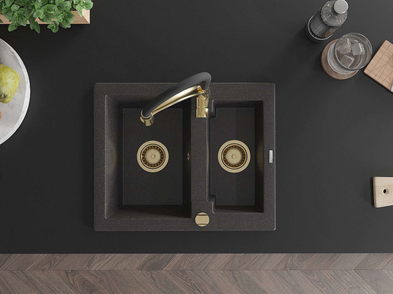 Mexen Carlos évier en granit 1,5 bac avec robinet de cuisine Aster, noir moucheté - 6518-76-73450-57-G