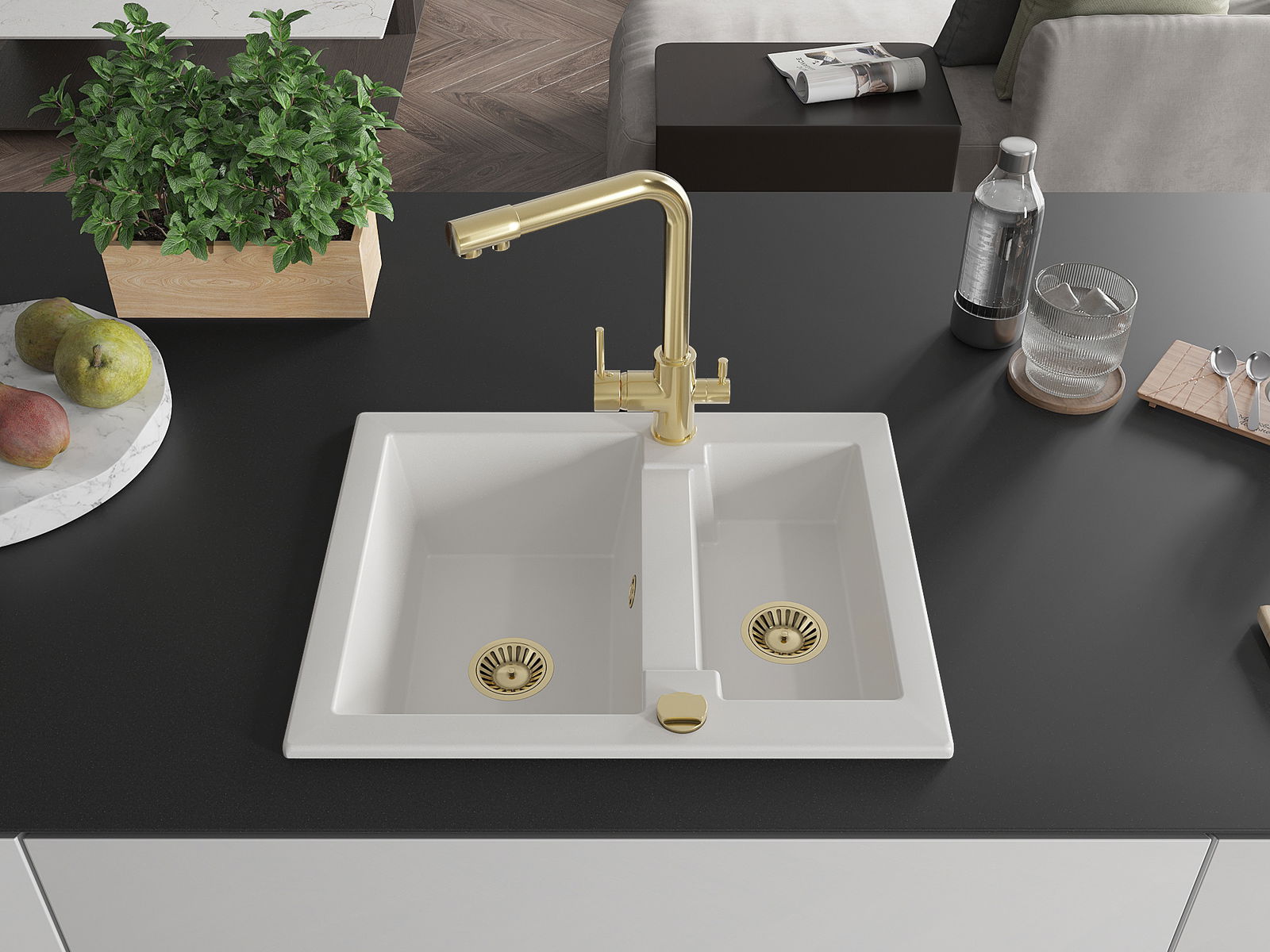 L'évier a été fabriqué en granit de haute qualité. Il constitue un complément élégant et surtout pratique à toute cuisine, quel que soit son style. La haute qualité et la durabilité du granit garantissent une utilisation pendant de nombreuses années.