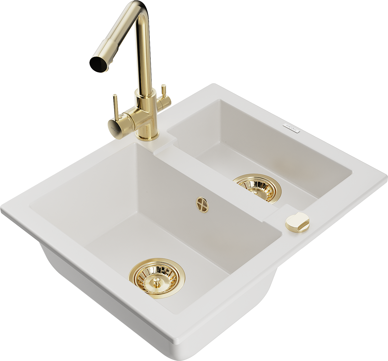 Mexen Carlos évier en granit 1,5 bac avec robinet de cuisine Duero, blanc - 6518-20-671600-50