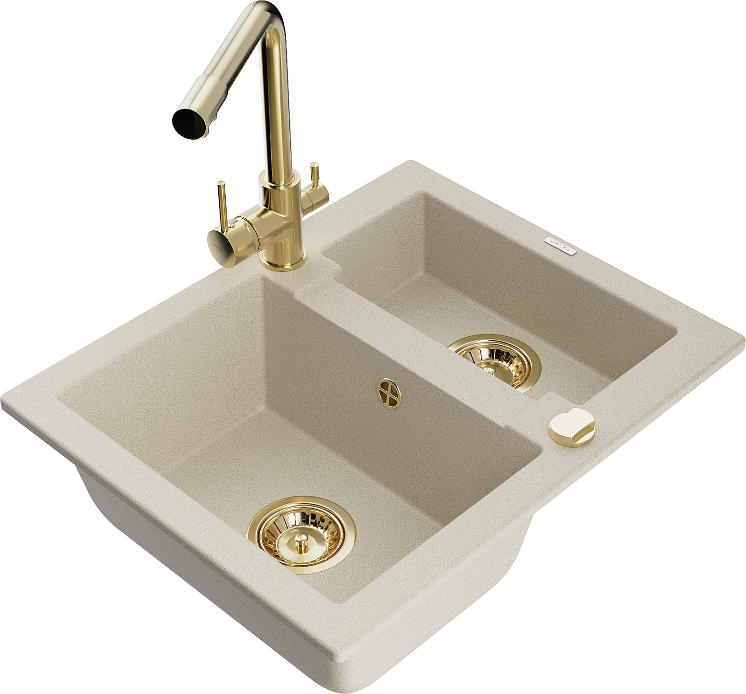 Mexen Carlos évier en granit 1,5 bac avec robinet de cuisine Duero, beige - 6518-69-671600-50