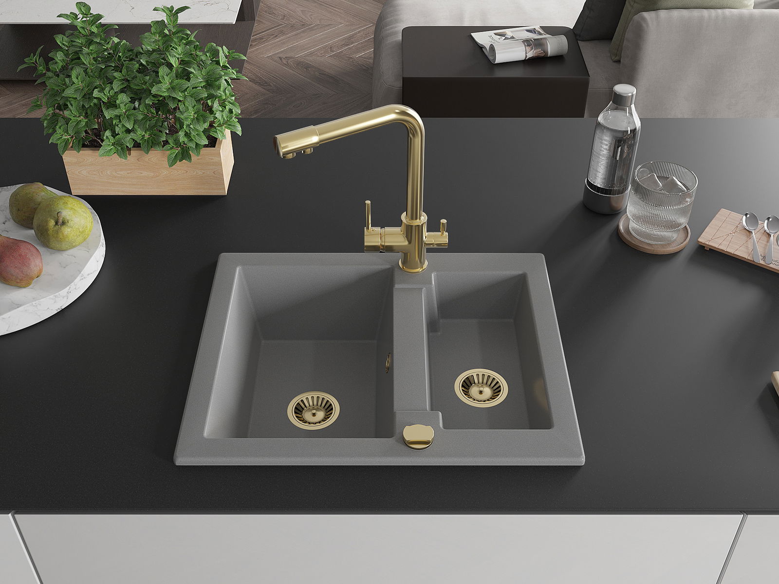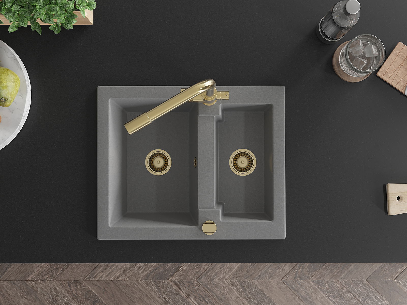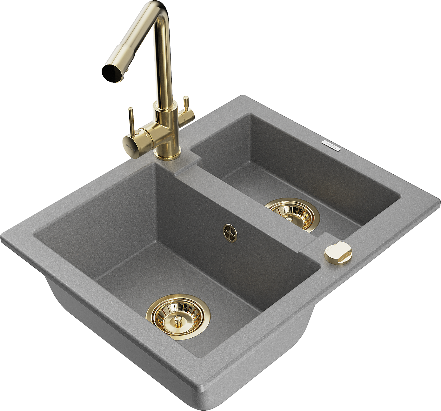 Mexen Carlos évier en granit 1,5 bac avec mitigeur cuisine Duero, gris - 6518-71-671600-50