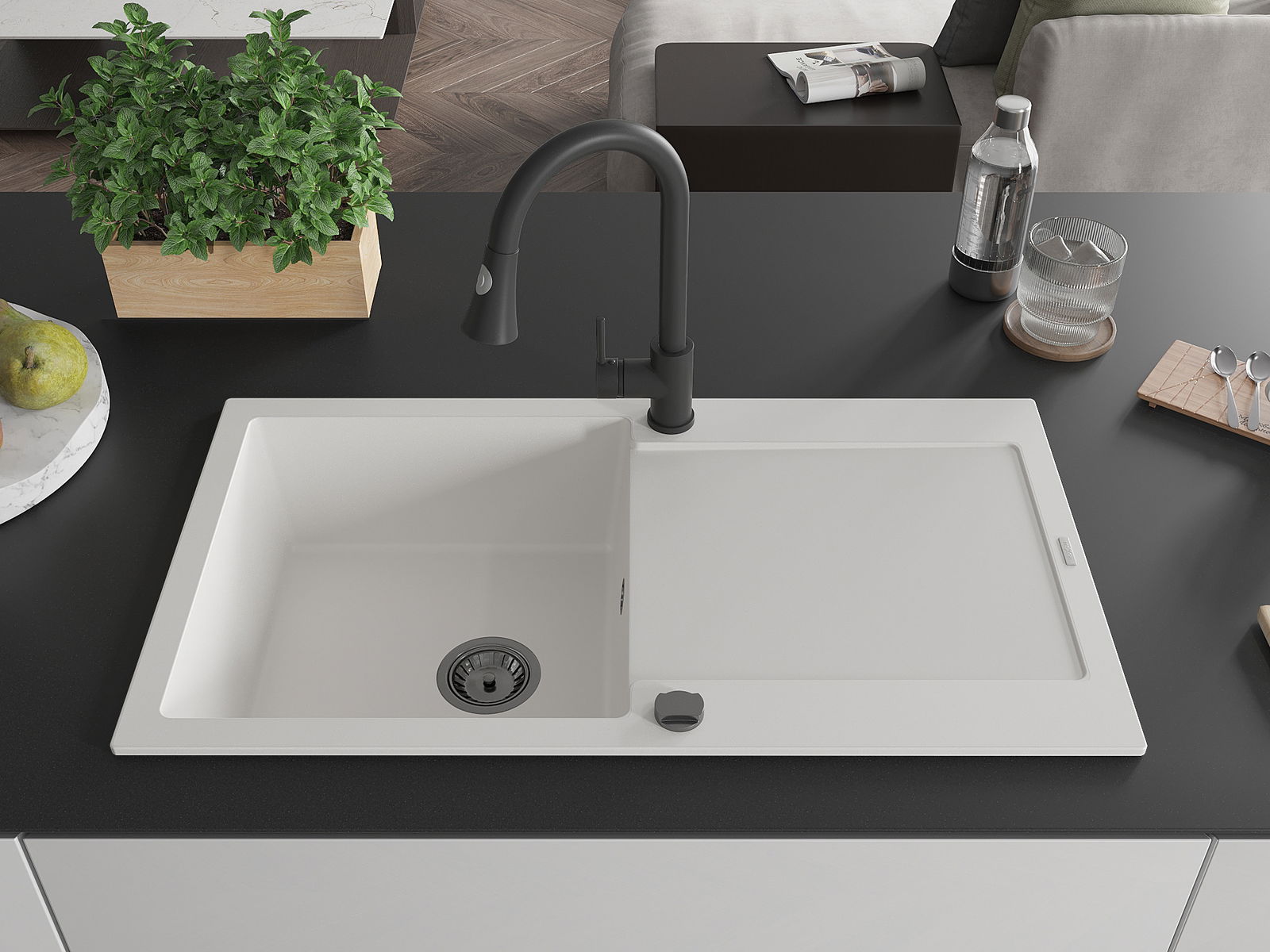 L'évier a été fabriqué en granit de haute qualité. Il constitue un complément élégant et surtout pratique à toute cuisine, quel que soit son style. La haute qualité et la durabilité du granit garantissent une utilisation pendant de nombreuses années.
