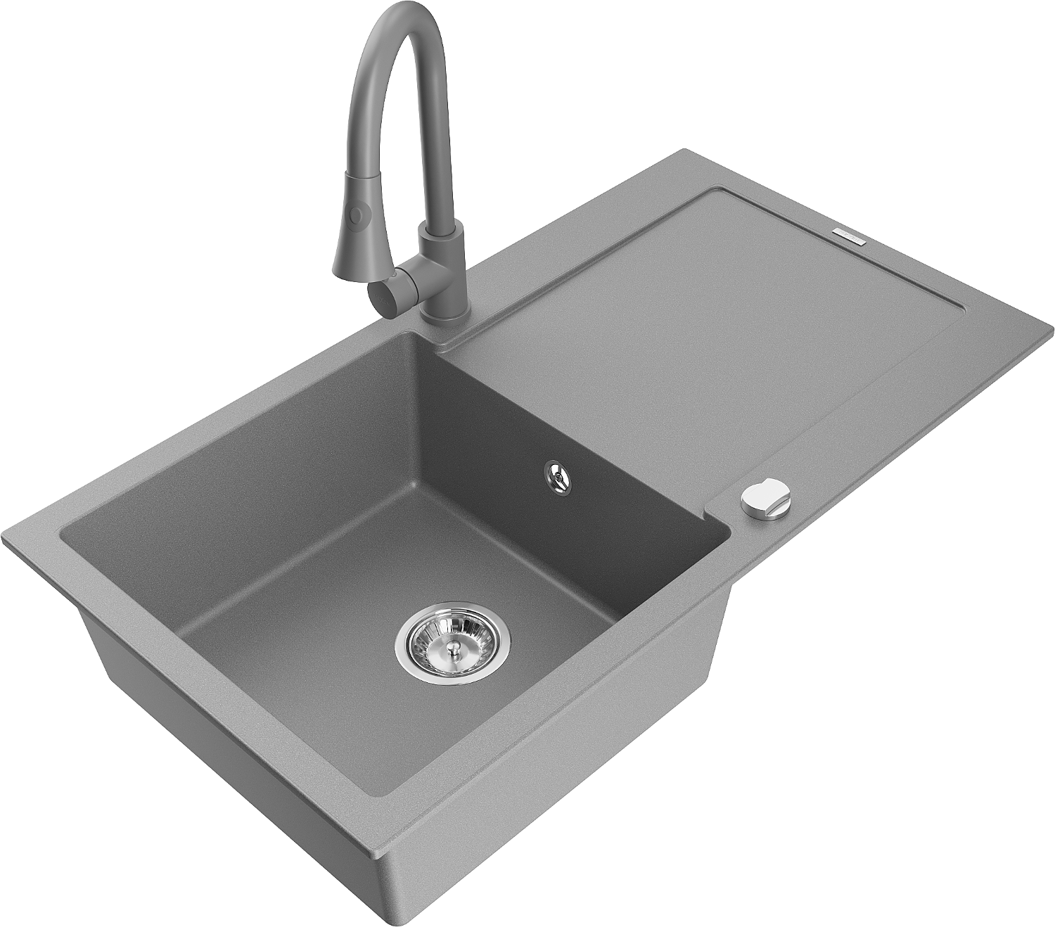 Mexen Leo évier en granit 1 bac avec égouttoir et robinet de cuisine Elia, gris - 6501-71-670101-71
