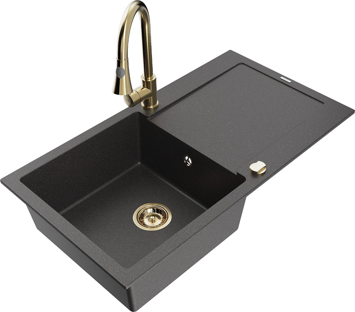 Mexen Leo évier en granit 1 bac avec égouttoir et robinet de cuisine Elia, noir moucheté - 6501-76-670101-50