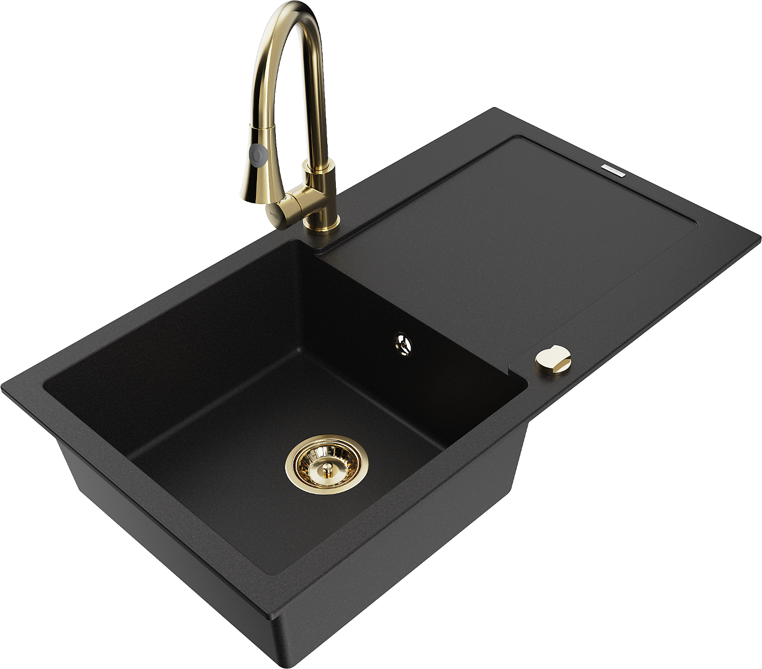 Mexen Leo évier de cuisine en granit à 1 bac avec égouttoir et robinet Elia, noir - 6501-77-670101-50