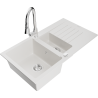 Mexen Matias évier en granit 1,5 bac avec égouttoir et robinet de cuisine Elia, blanc - 6502-69-670101-00