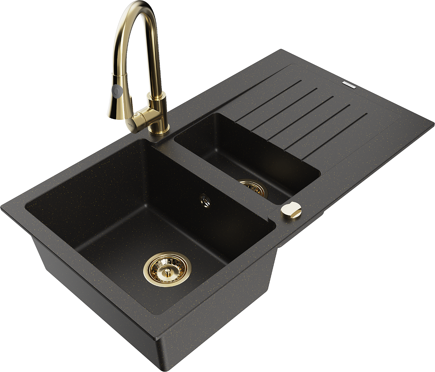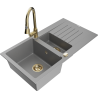 Mexen Matias évier en granit 1,5 bac avec égouttoir et mitigeur de cuisine Elia, noir/doré métallisé - 6502-75-670101-50