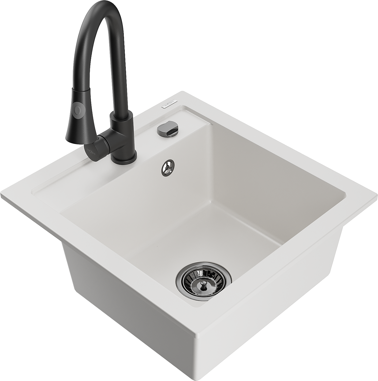 Mexen Vito évier en granit 1 bac avec robinet de cuisine Elia, blanc - 6503-20-670101-70