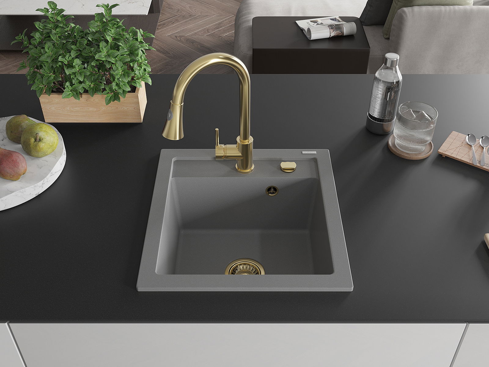 Mexen Vito évier en granit 1 bac avec robinet de cuisine Elia, gris - 6503-71-670101-50