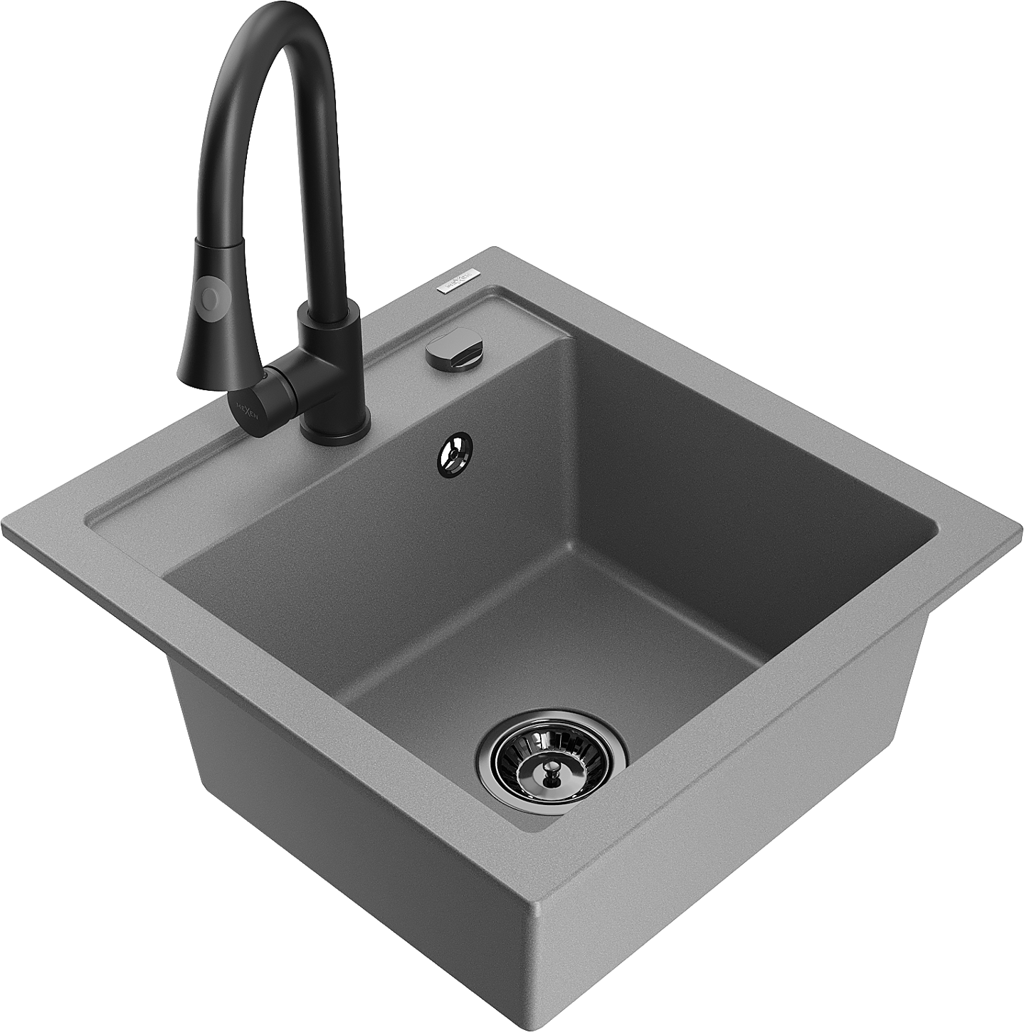 Mexen Vito évier en granit 1 bac avec robinet de cuisine Elia, gris - 6503-71-670101-70-B