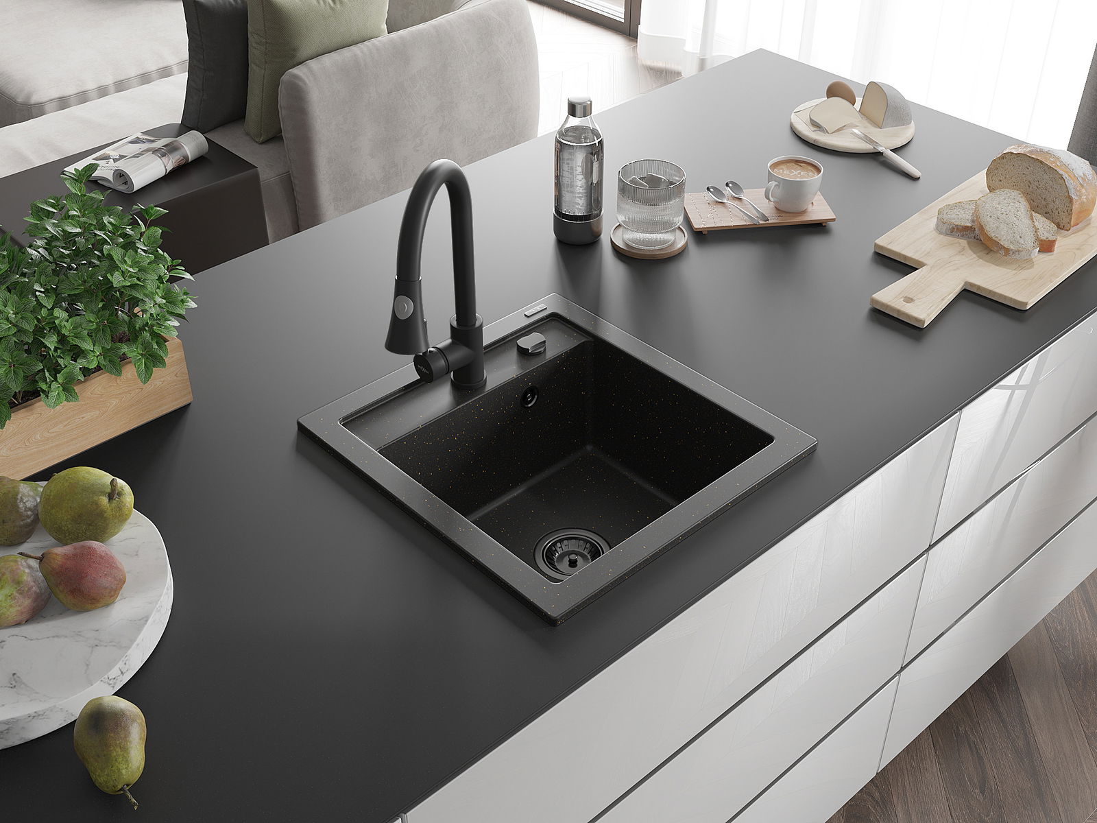 L'évier a été fabriqué en granit de haute qualité. Il constitue un complément élégant et surtout pratique à toute cuisine, quel que soit son style. La haute qualité et la durabilité du granit garantissent une utilisation pendant de nombreuses années.