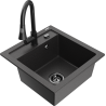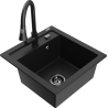 Mexen Vito évier en granit 1 bac avec robinet de cuisine Elia, noir/doré métallique - 6503-75-670101-70-B