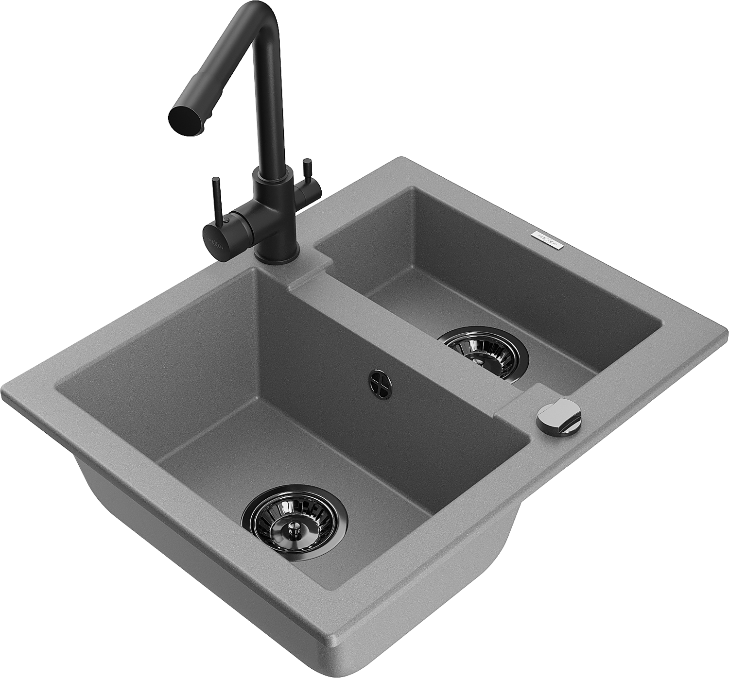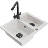 Mexen Carlos évier en granit 1,5 bac avec robinet de cuisine Duero, gris - 6518-71-671600-70-B