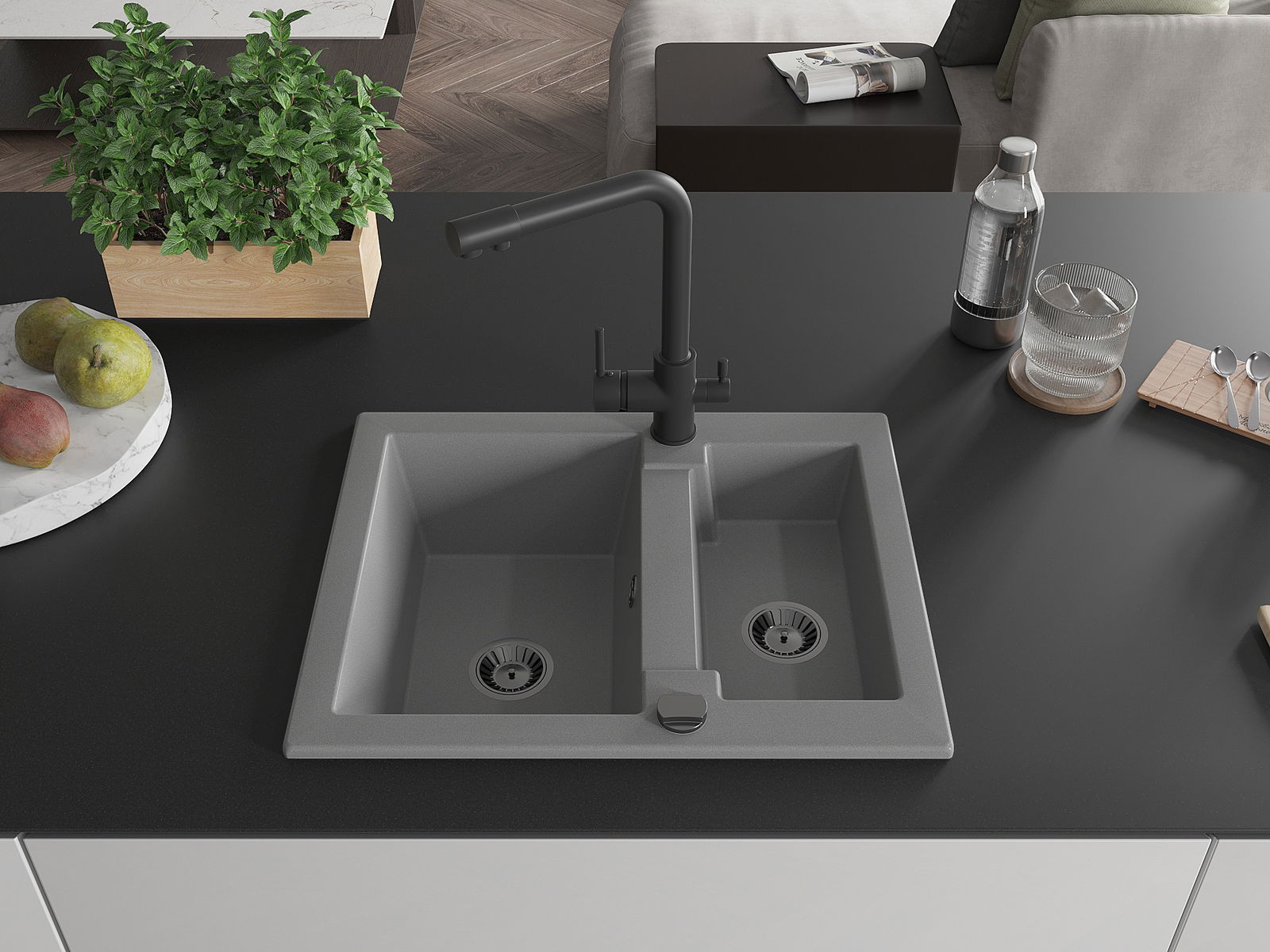 L'évier a été fabriqué en granit de haute qualité. Il constitue un complément élégant et surtout pratique à toute cuisine, quel que soit son style. La haute qualité et la durabilité du granit garantissent une utilisation pendant de nombreuses années.