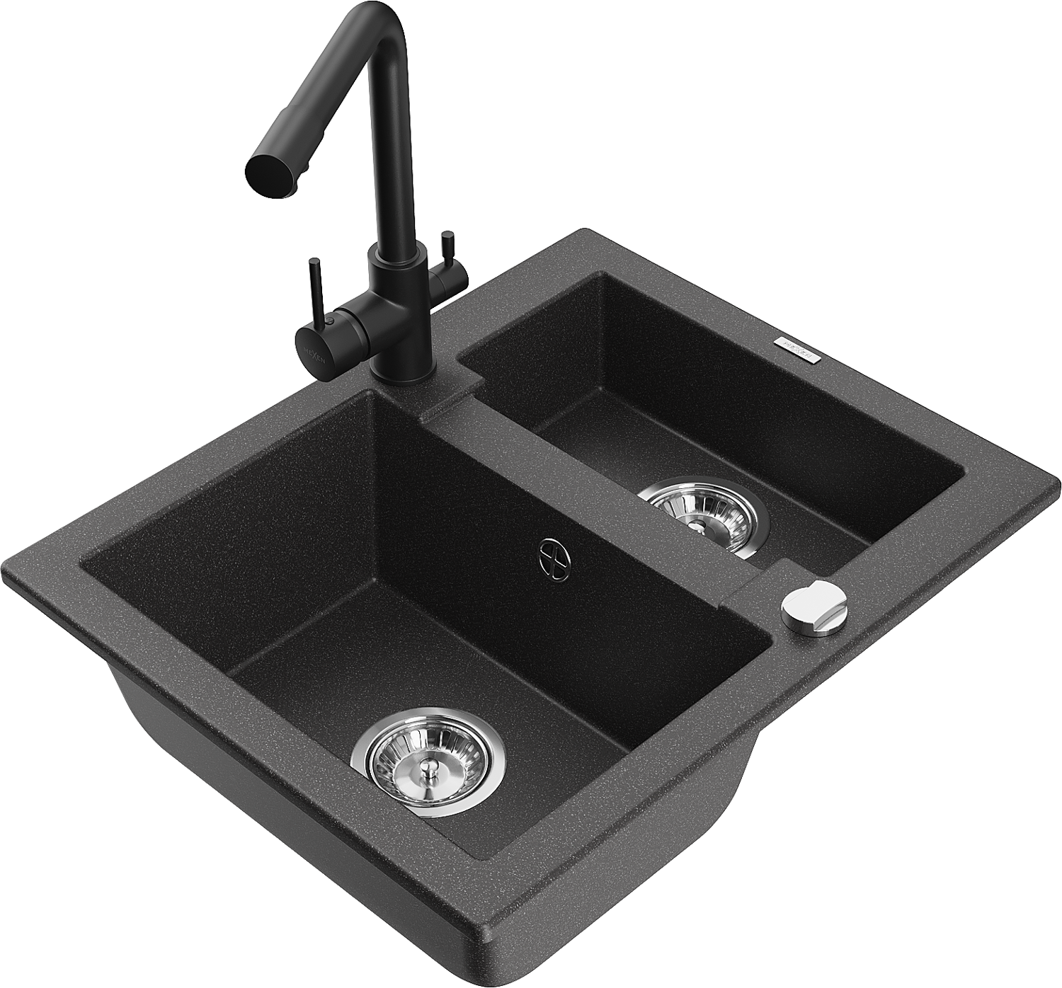 Mexen Carlos évier en granit 1,5 bac avec robinet de cuisine Duero, noir moucheté - 6518-76-671600-70