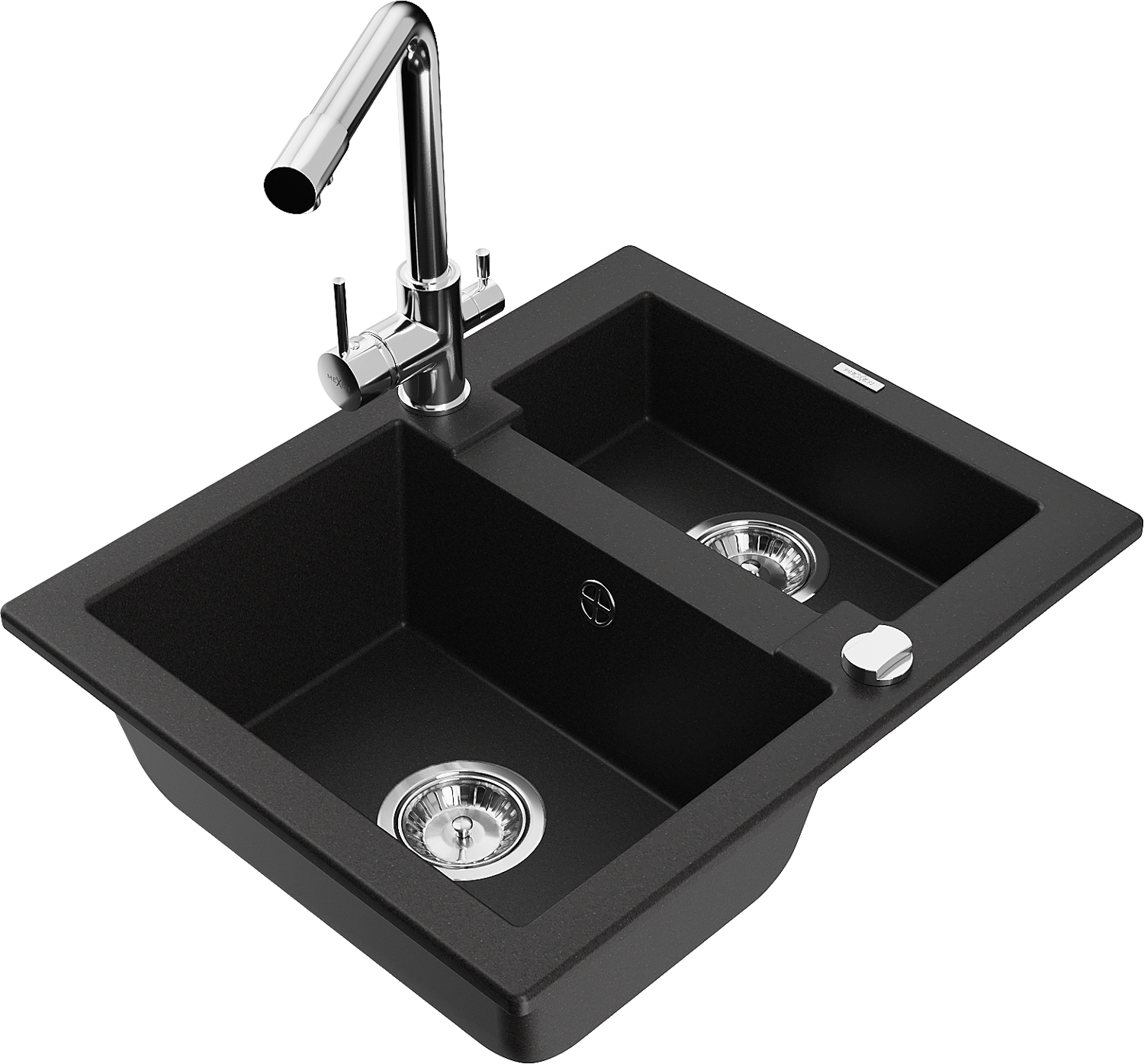 Mexen Carlos évier en granit 1,5 bac avec robinet de cuisine Duero, noir - 6518-77-671600-00