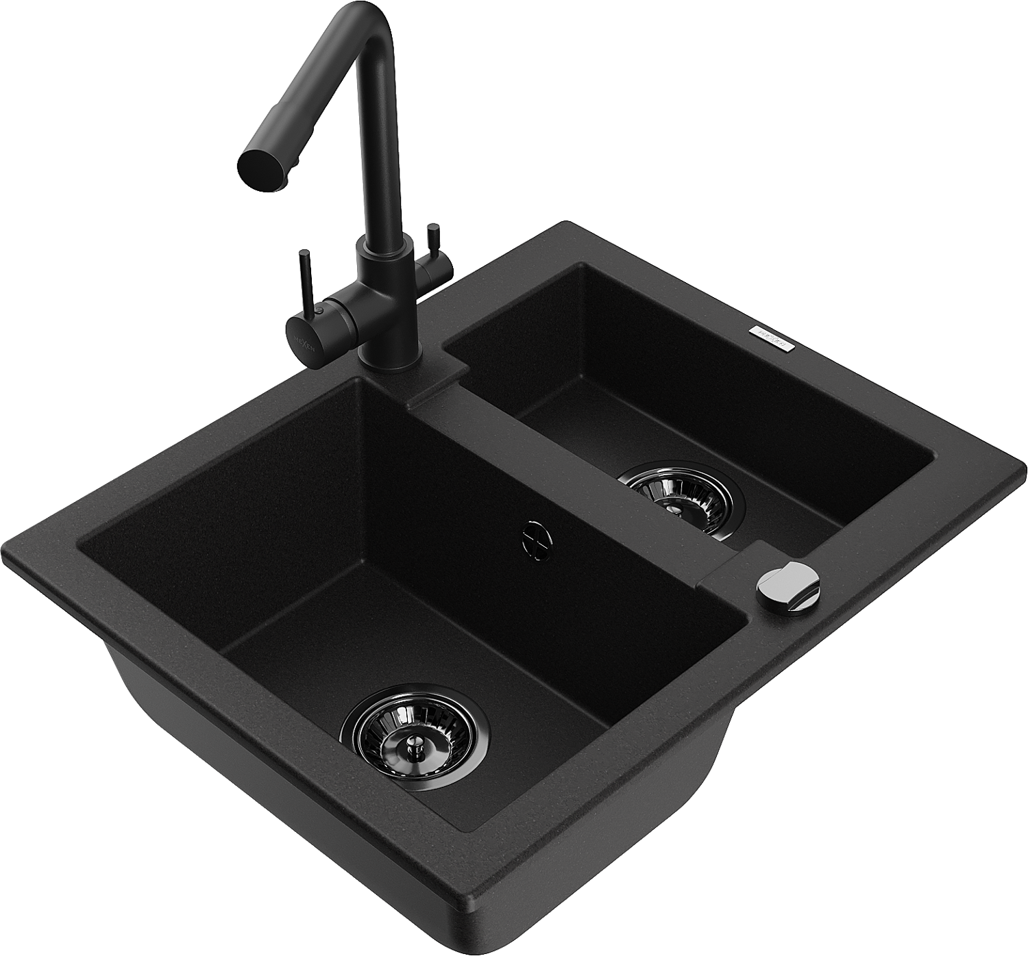 Mexen Carlos évier en granit 1,5 bac avec mitigeur de cuisine Duero, noir - 6518-77-671600-70-B