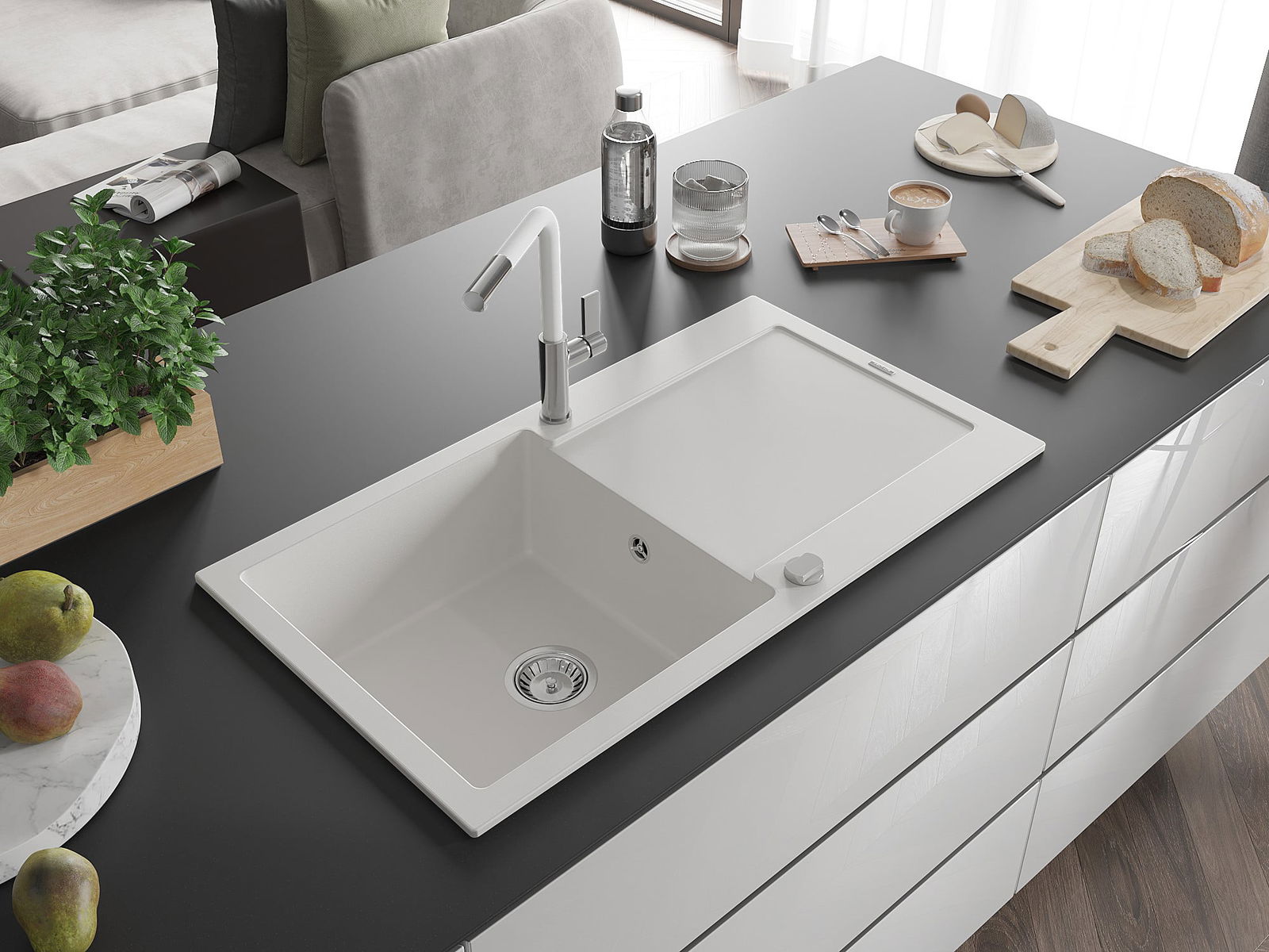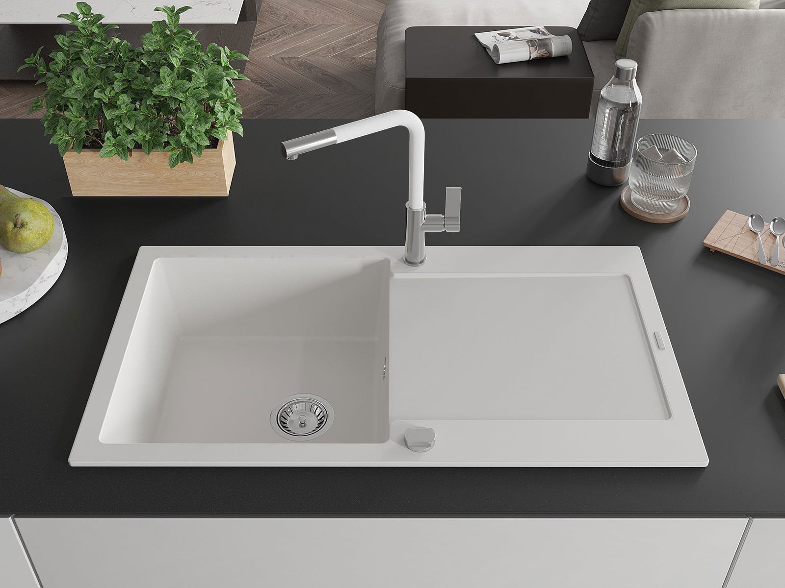 L'évier se distingue par une résistance exceptionnelle aux hautes températures et à leurs changements soudains, ce qui évite toute déformation même sous l'effet prolongé de l'eau chaude.
