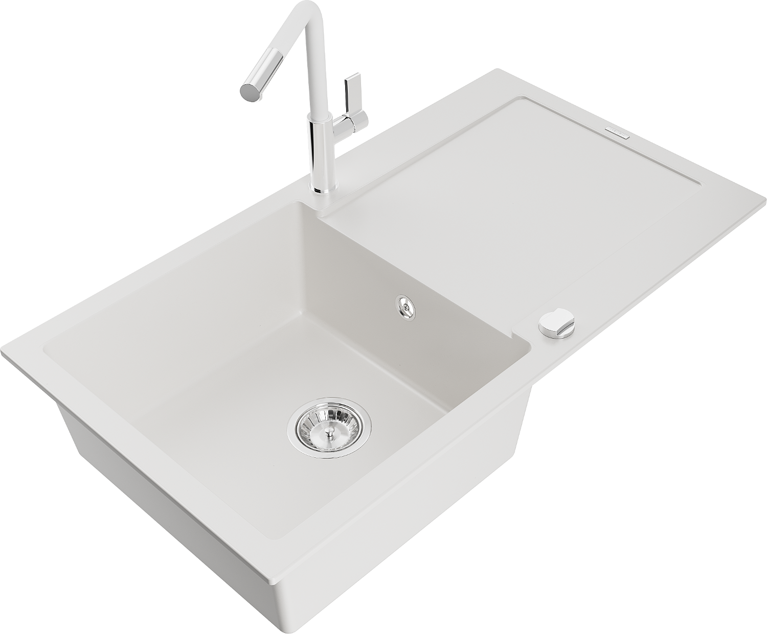 Mexen Leo évier en granit 1 bac avec égouttoir et robinet de cuisine Flora, blanc - 6501-20-670401-02