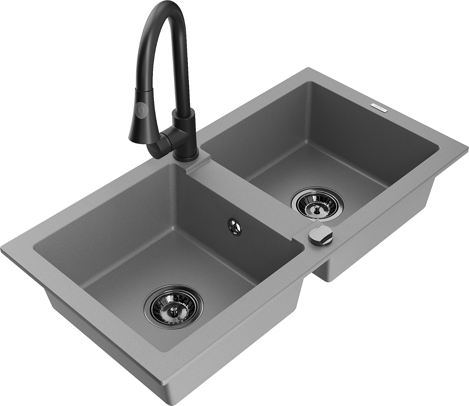 Mexen Mario évier en granit à 2 bacs avec robinet de cuisine Elia, gris - 6504-71-670101-70-B
