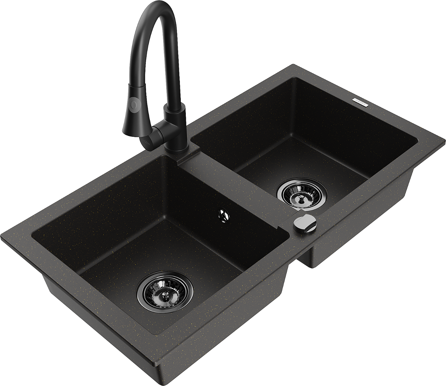 Mexen Mario évier en granit à 2 bacs avec robinet de cuisine Elia, noir/métallisé doré - 6504-75-670101-70-B