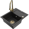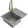 Mexen Enzo évier en granit 1 bac avec égouttoir et robinet de cuisine Elia, beige - 6506-69-670101-50