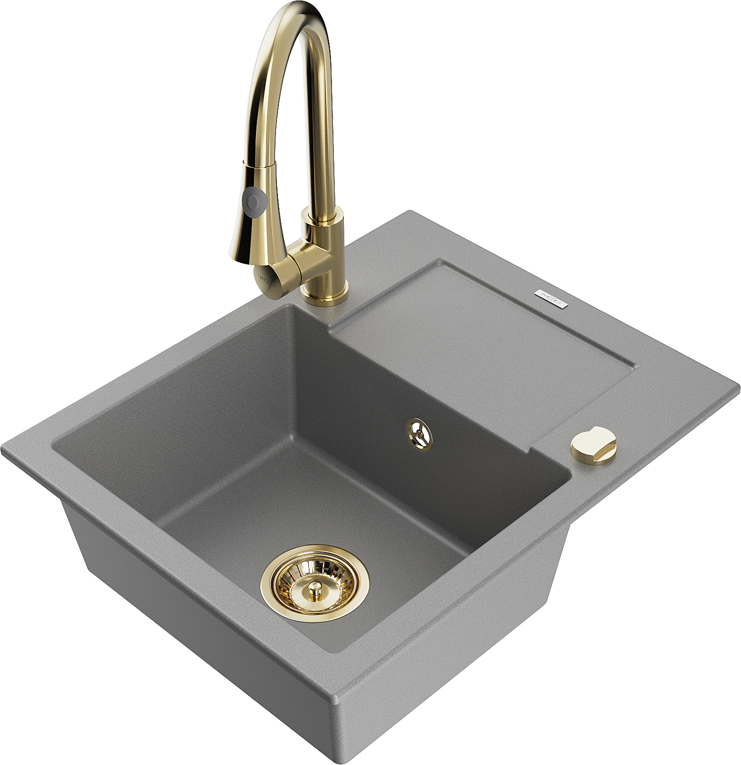 Mexen Enzo évier en granit 1 bac avec égouttoir et robinet de cuisine Elia, gris - 6506-71-670101-50