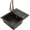 Mexen Enzo évier en granit 1 bac avec égouttoir et robinet de cuisine Elia, noir - 6506-77-670101-50-B
