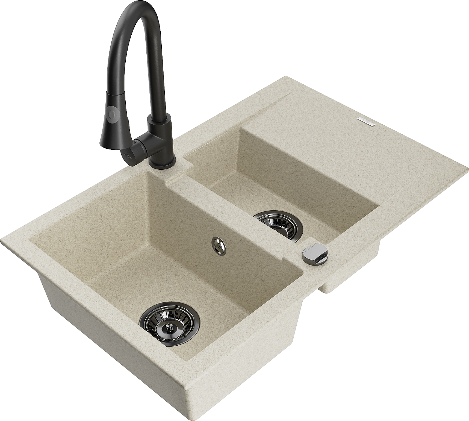 Mexen Gaspar évier en granit 1,5 bac avec égouttoir et mitigeur de cuisine Elia, beige - 6507-69-670101-70