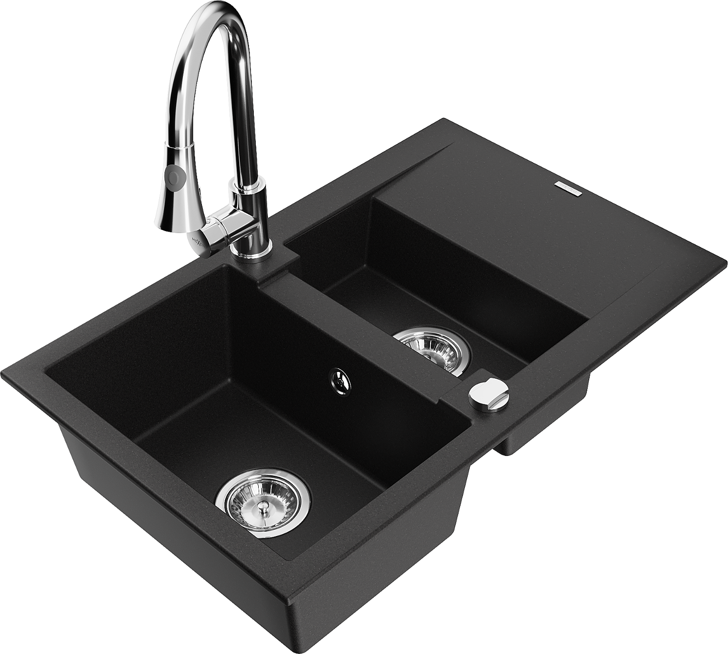 Mexen Gaspar évier en granit 1,5 cuve avec égouttoir et mitigeur de cuisine Elia, noir - 6507-77-670101-00