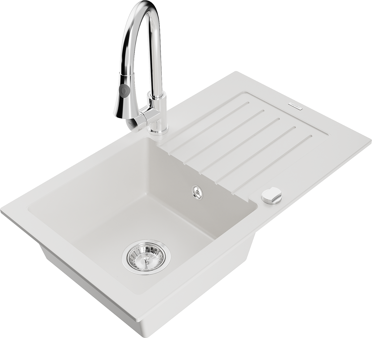 Mexen Pablo évier en granit 1 bac avec égouttoir et robinet de cuisine Elia, blanc - 6510-20-670101-00