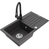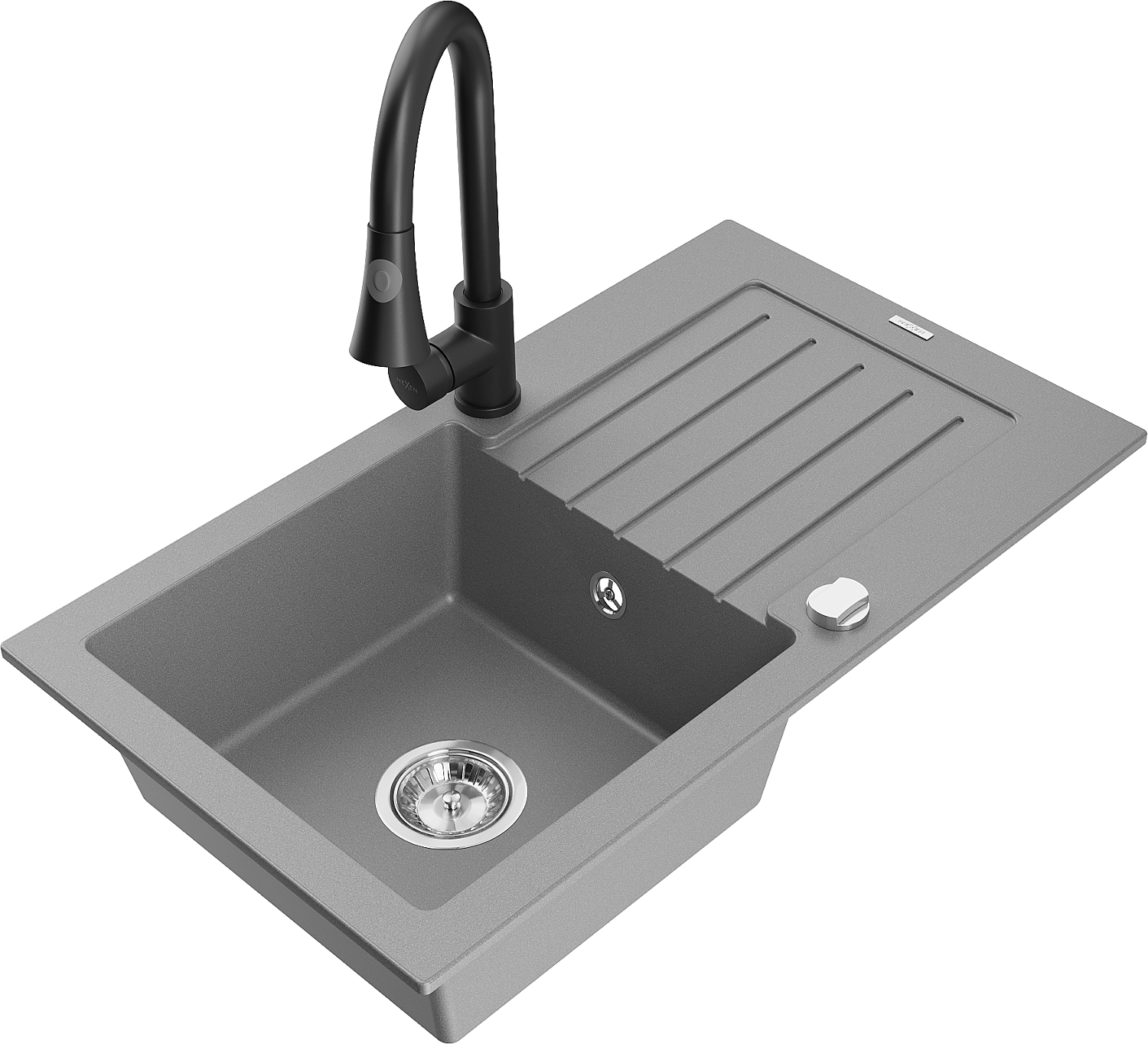 Mexen Pablo évier en granit 1 bac avec égouttoir et robinet de cuisine Elia, gris - 6510-71-670101-70