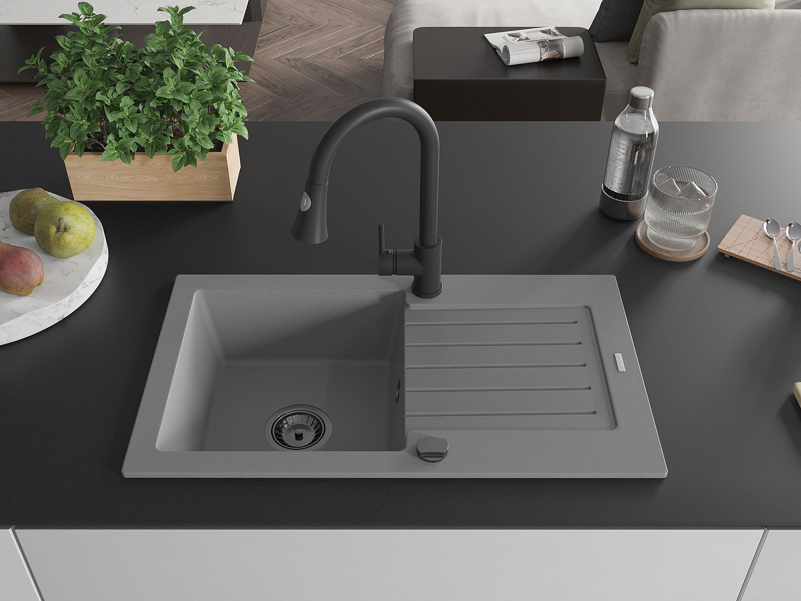 L'évier a été fabriqué en granit de haute qualité. Il constitue un complément élégant et surtout pratique à toute cuisine, quel que soit son style. La haute qualité et la durabilité du granit garantissent une utilisation pendant de nombreuses années.