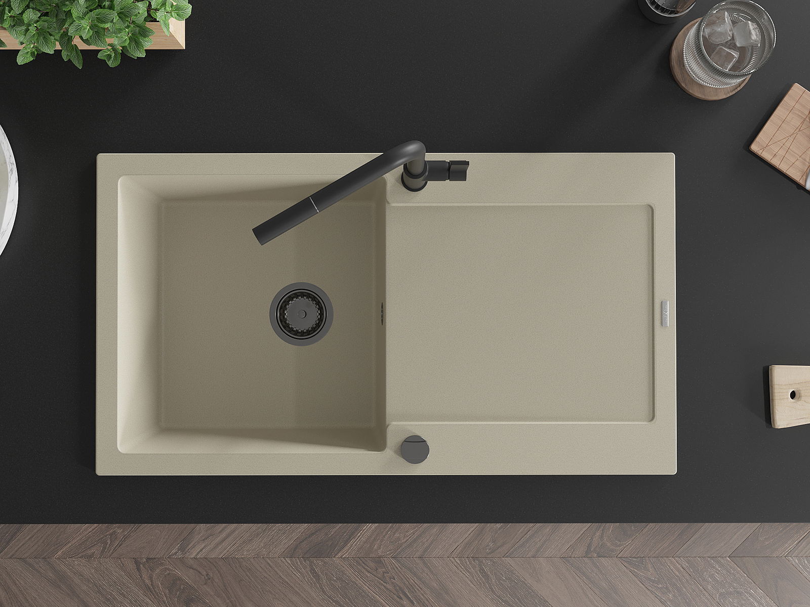 L'évier a été fabriqué en granit de haute qualité. Il constitue un complément élégant et surtout pratique à toute cuisine, quel que soit son style. La haute qualité et la durabilité du granit garantissent une utilisation pendant de nombreuses années.