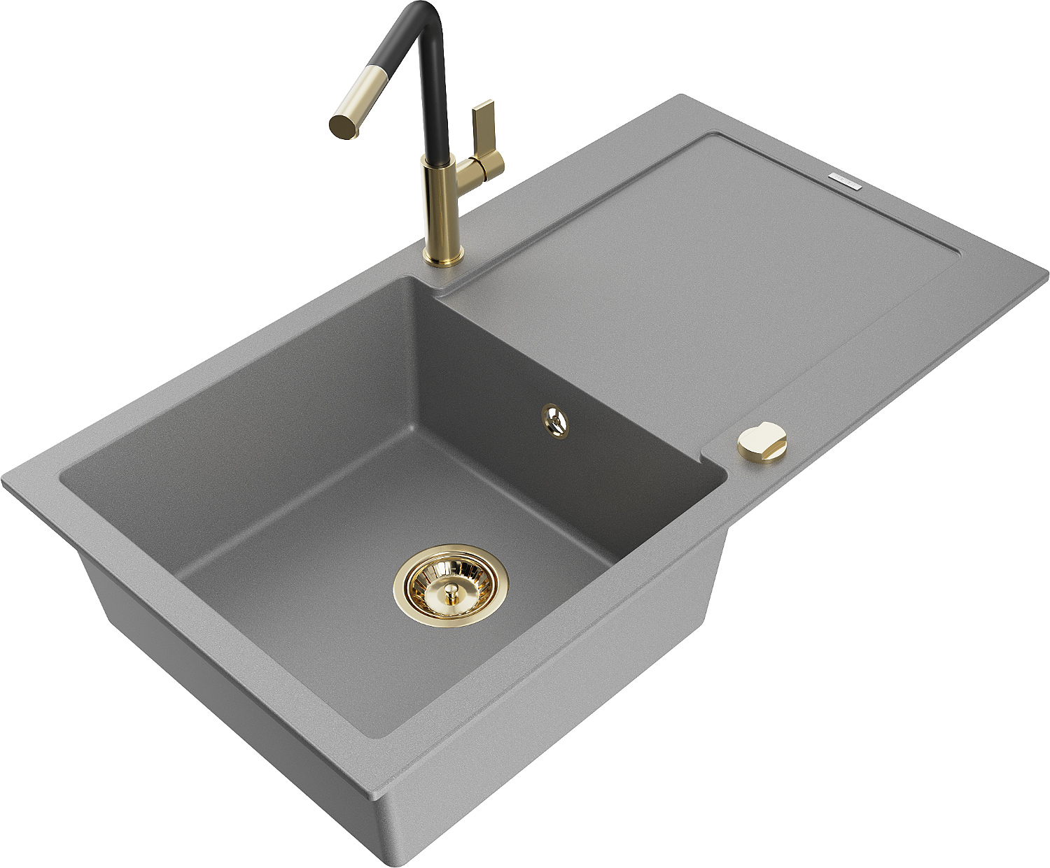 Mexen Leo évier de cuisine en granit à 1 bac avec égouttoir et mitigeur de cuisine Flora, gris - 6501-71-670401-57-G