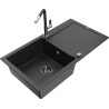 Mexen Leo évier en granit 1 bac avec égouttoir et robinet de cuisine Flora, noir/doré métallique - 6501-75-670401-07-B